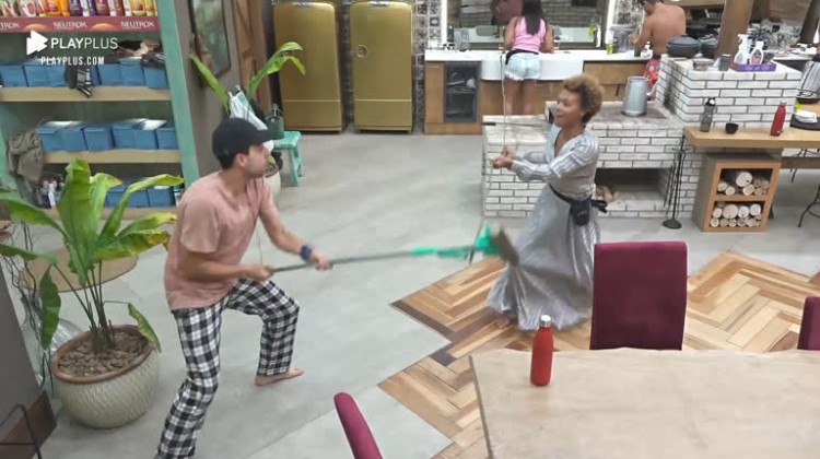 Saiu \"motivo novo\" para voto? Os peões Lucas e Lidi, durante o tempo livre na sala, decidiram improvisar um \"duelo de espadas\" com objetos da sede. A luta terminou em empate, mas Lidi saiu \"ferida\"... .