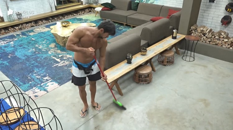 Dia de faxina! Mariano, Jakelyne e Tays deram um trato na sede após o almoço dos peões. Ficou um brinco!