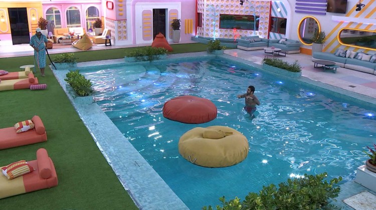 Pedro Scooby mergulha na piscina e Paulo André brinca com o brother sobre a temperatura da água: "Você entra na água de Nazareth com 1 grau e não vai entrar aqui?"