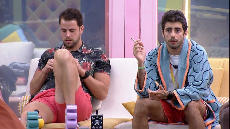 Pedro Scooby, Douglas Silva e Gustavo estão conversando na área externa do BBB 22, quando surfista comenta como está a casa atualmente. "A casa está muito vazia!", diz.