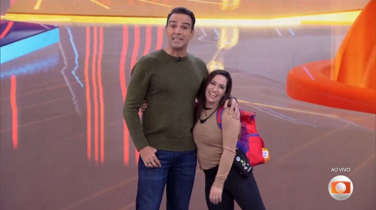 Tadeu Schmidt recebe no palco Daniele Hypolito, a 15º eliminada do BBB 25
