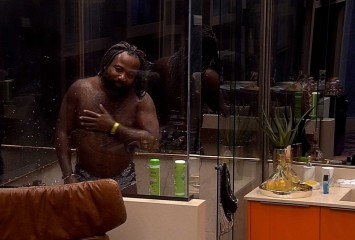 Após tomar banho de piscina, Rodrigo vai para o Quarto do Líder com Gabriela. Lá, ele toma banho ...