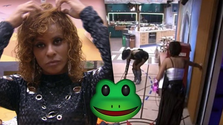 Sapo é encontrado por sisters na sala do BBB 23 — Foto: Globo; Reprodução/Twitter