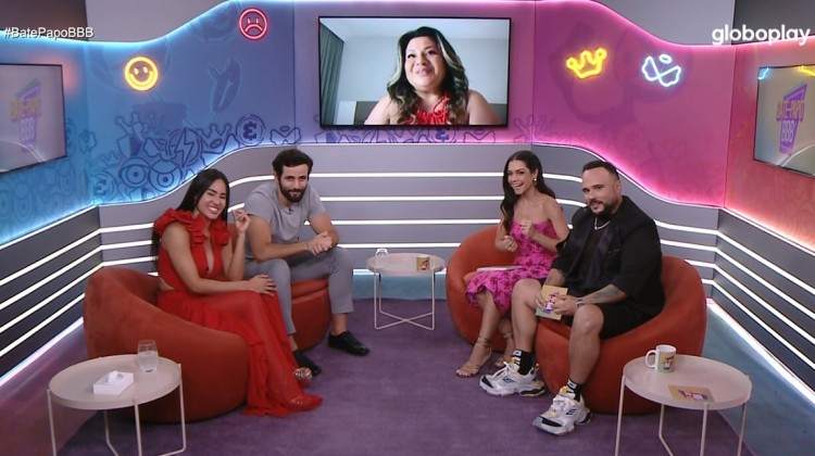 Isabelle e Matteus são recebidos por Thaís Fersoza e Ed Gama no Bate-Papo BBB da madrugada desta quarta-feira (17). Os dois trocam beijos na frente dos apresentadores e Matteus, em seguida, conversa ao vivo com a Jaqueline, mãe de Isabelle.